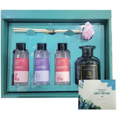 | 기타사항 | •100ml x3개 라벤더,블랙체리,라즈베리 •29x23x7cm (박스) 고급선물세트 •유리병,스틱3개,꽃1 |
