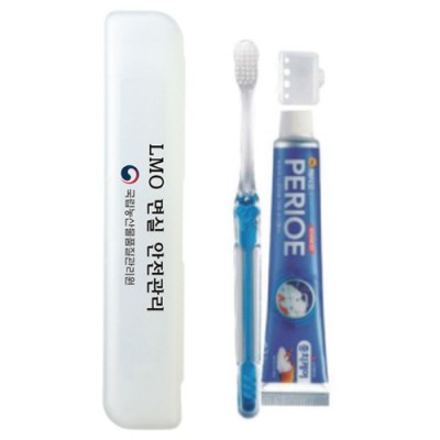 | 기타사항 | (종이케이스별도 100원) •Size : 200×40×30㎜ •페리오치약50g,국산텐탈칫솔,캡 ※구성품 교체 가능 / 칼라인쇄시 100원추가 |